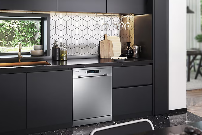 With 13 place settings, it’s ideal for medium to large families. The DW60M5042FS comes with multiple wash programs, including Auto, Intensive, Eco, and Quick, giving you full flexibility depending on load size and soiling level. It operates quietly and efficiently, helping you maintain a calm kitchen environment.